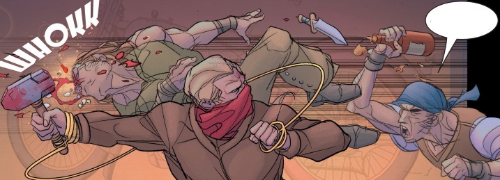 El apartado visual de Pasqual Ferry es gloria bendita. Su decisión de dibujar el martillo atado a una cuerda —nada de magia de retorno automático— ancla la serie en un realismo táctil. La coreografía de las peleas, con el martillo girando de forma física, es de lo mejor que ha parido Marvel en años. Es sucio, es vibrante y se siente peligrosamente real, especialmente cuando Sigurd tiene que curarse sus propias heridas sin ayuda divina.