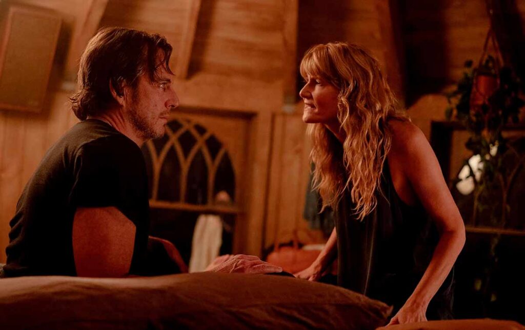 Dern dota a Tess de una humanidad vibrante; no es «la mujer que se queda atrás», sino un motor propio que lidia con la misma desorientación que su marido. Juntos, construyen un retrato matrimonial que recuerda a la aspereza de Historia de un matrimonio, pero con una capa de ternura mucho más transpirable.