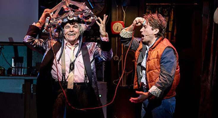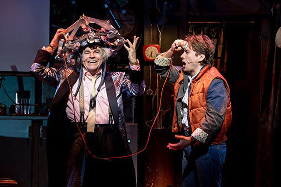 - Los protagonistas: Roger Bart (el Doc original del musical) no interpreta a Emmett Brown; interpreta a Christopher Lloyd interpretando a Emmett Brown. Y funciona. Es un payaso encantador que rompe la cuarta pared para mofarse de lo absurdo que es que un grupo de bailarines aparezca de la nada cada vez que empieza a cantar.